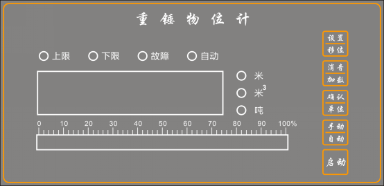☆ 橫式光柱顯示物位的測量百分比及重錘的運動狀態。