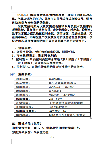 SYB-351(智能)數(shù)顯壓力控制器-使用說明書