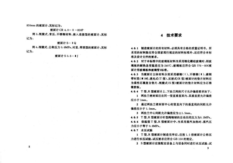 玻璃板液面計標準系列及技術(shù)要求
